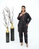 For lovers of timeless black and white — this monochrome printed cotton set offers simplicity with a bold edge. Choose between traditional and modern bottom styles for a customized look.